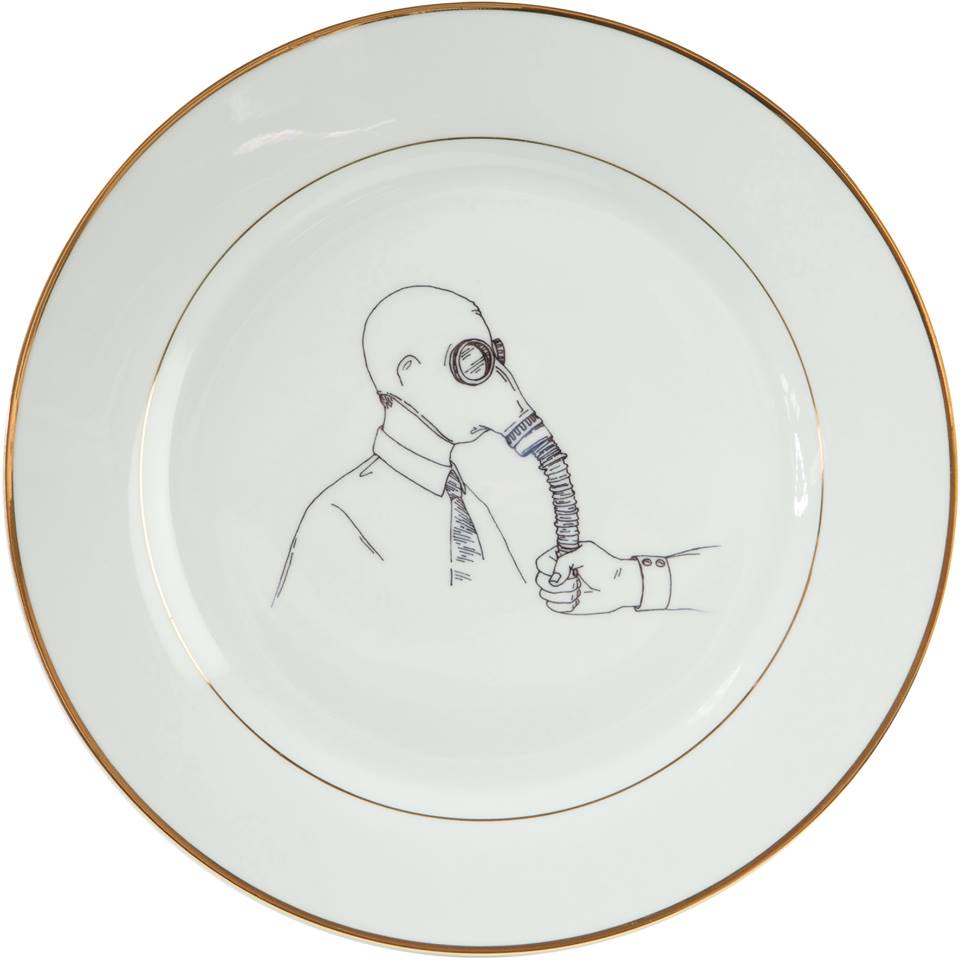 Работа “Процедурная комната” была отправлена в Тбилиси на выставку ‘The absent image’ (да, название пророческое, желающие могут шутить на эту тему). Через несколько дней после отправления мне позвонили из почтовой службы и сообщили, что Государственная Фискальная Служба не выпустила работу из Украины. Потом я получил письмо с объяснением, таким: “Отправление – коллекция обеденных тарелок, на которых изображено насилие. Сотрудники Государственной фискальной службы Украины ознакомили представителя перевозчика с Законом Украины «Про захист суспільної моралі». Так же, госслужащим ДФС было предложено провести дополнительные исследования, с вовлечением Центральной таможенной лаборатории. Процедура может занять около 30 календарных дней.” Выставка, естественно, к этому времени уже должна была открыться без “Процедурной комнаты”.
