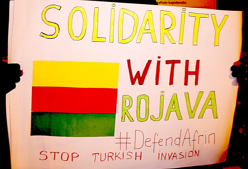 According to protesters’ speeches Syrian Kurds who achieved direct democracy in number of cities and villages have a fate similar to Ukrainians’: their freedom is ruined by the neighbor aggressive empire. Kurdish right for self-determination is under attack by Syrian regime forces, Islamic State terror and now by Turkey-backed militias.