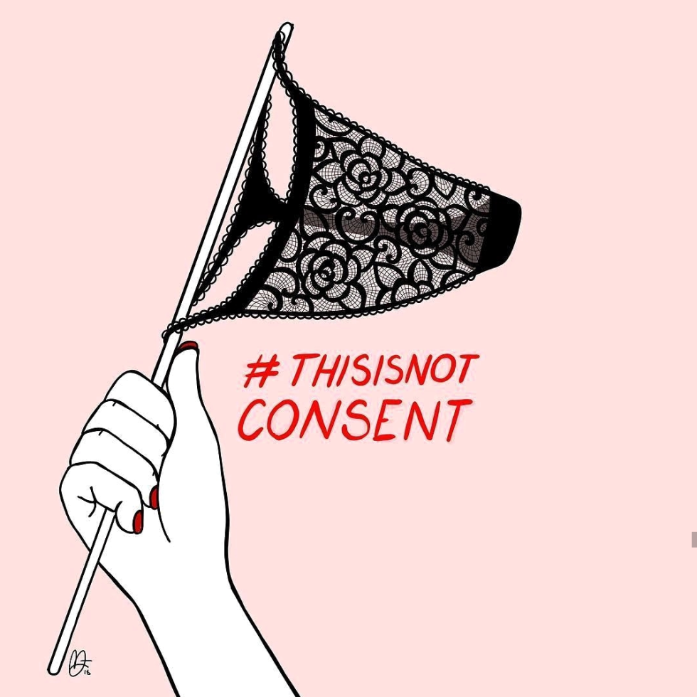 Когда вердикт скандального суда стал достоянием общественности, феминистки не смогли молчать. Активистская группа Mná na hÉireann (Женщины Ирландии) запустила акцию онлайн-протеста #ThisIsNotConsent (#ЭтоНеСогласие). Дальше акция перекинулась на другие соцсети и вышла за пределы Ирландии. Тысячи женщин постят фото своего нижнего белья и пишут посты о том, что какое-либо бельё, надетое на женское тело, не равно согласию на секс.
