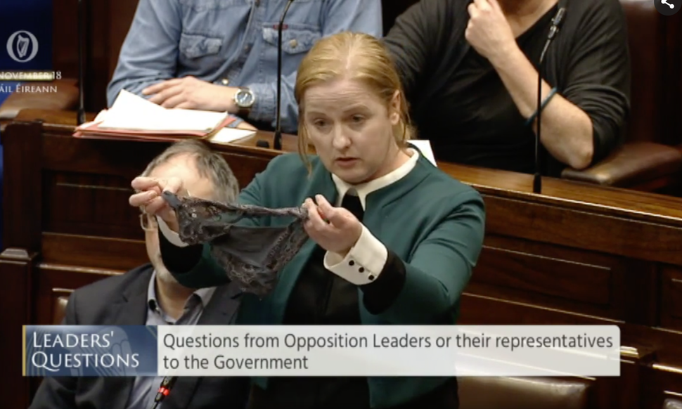 «Возможно, это покажется стыдным, что я демонстрирую трусы в неподходящем для этого месте. Я делаю это, чтобы показать, как чувствует себя жертва изнасилования, когда её нижнее бельё показывают в суде. Когда уже ирландский парламент примет меры для борьбы с сексуальным насилием?» — спросила она с трибуны.