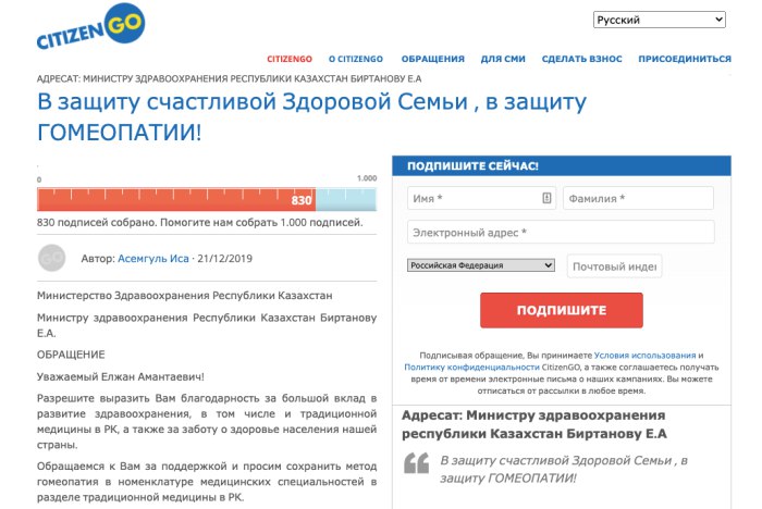Названия петиций Citizen.GO говорят сами за себя: «Остановим антисемейный закон о “домашнем насилии”!», «Гомосексуализм не остановит ВИЧ», «Остановим секпросвет и аборты в ООН!», «Европарламент хочет объявить аборты “правом человека”», «Посольствам “пяти глаз”: откажитесь от ЛГБТ–пропаганды», «ПРЕКРАТИТЕ ФИНАНСИРОВАТЬ ВОЗ!»